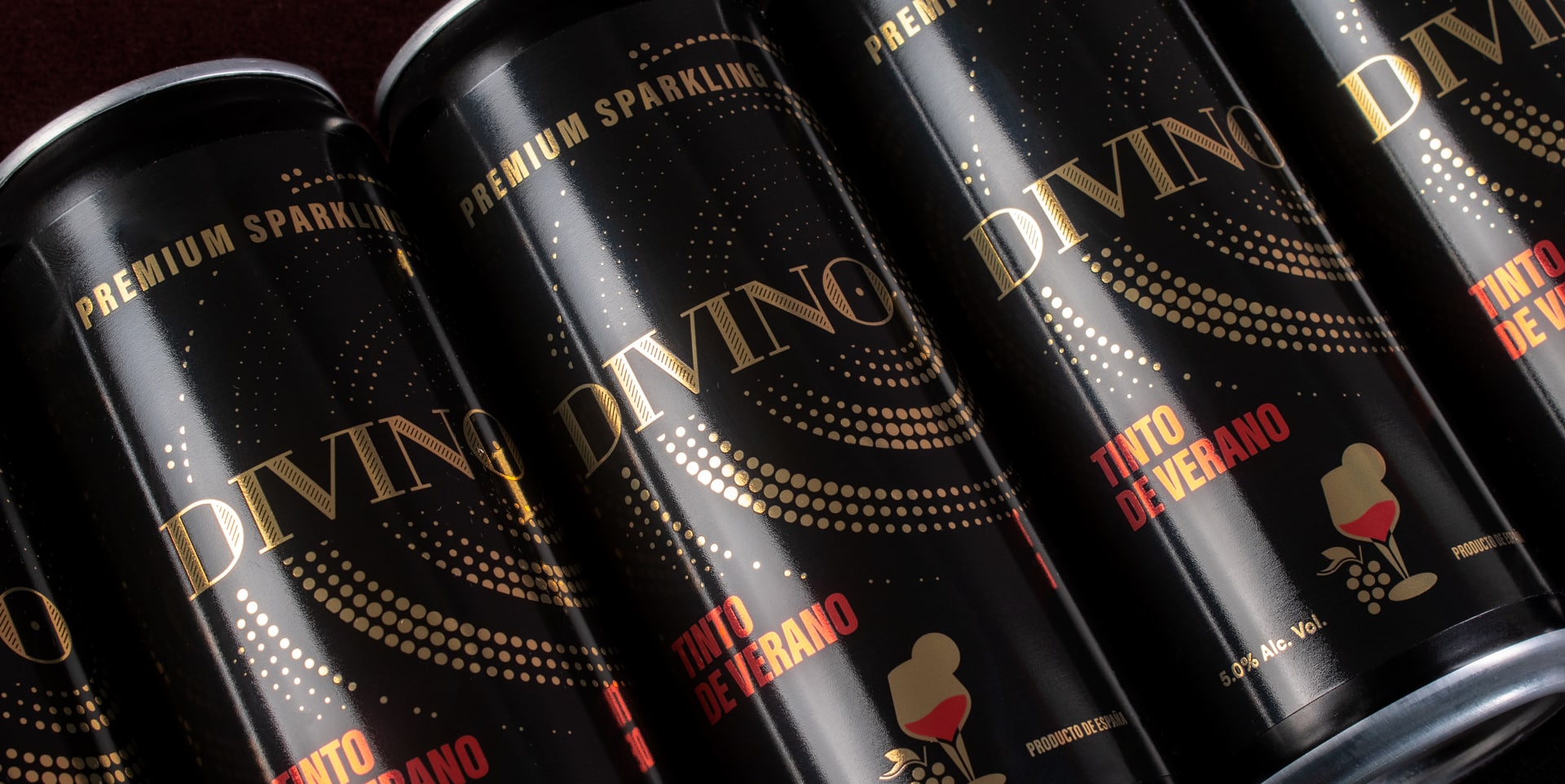 El desarrollo del diseño de packaging para lata de Divino tinto de verano se planteó desde el inicio como un proyecto versátil y técnicamente flexible. Se trabajó tanto el diseño de manera que fuera fácilmente aplicable tanto a etiqueta como a litografía, asegurando que la identidad visual pudiera adaptarse a distintos sistemas de producción sin perder coherencia, el impacto visual y que mantuviera el aspecto en el acabado lo mas fielmente posible. Esta flexibilidad técnica permite a la marca ajustar volúmenes de producción, optimizar costes y escalar el proyecto según la demanda del mercado. El uso predominante del negro aporta profundidad, elegancia y sofisticación, mientras que el oro brillo metalizado introduce un contraste visual potente que eleva la percepción de valor del producto. Estos elementos funcionan tanto en impresión digital como en litografía directa sobre lata, manteniendo la fuerza del branding en cualquier formato. El packaging no solo protege el producto, sino que se convierte en una herramienta de comunicación clave, capaz de transmitir calidad, diferenciación y cuidado por el detalle. Este enfoque integral del diseño garantiza que Divino se presente como una propuesta sólida dentro del mercado de los Tintos de Verano y vinos con bajo contenido en alcohol.